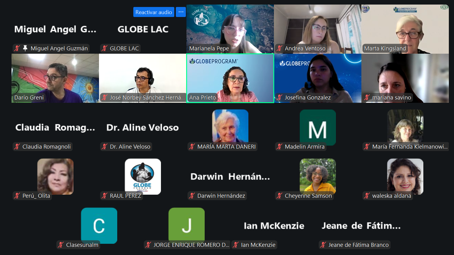 The GLOBE LAC Regional Office organized the GLOBE LAC Regional Meeting on December 2 and 3 via the Zoom platform. Twenty-five members of our region participated, including country coordinators, Working Group members, and teachers, along with the presence of Rebecca Lewis, Director of Community Engagement and Support at the GLOBE Implementation Office.