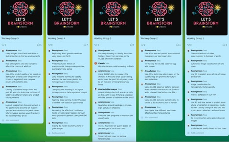 Role reversal: now I was the researcher! After a few weeks of data collection, plus learning about remote sensing and hearing from real scientists like Dr. Bri Lind and Dr. Di Yang, we were ready to explore our data and develop a research topic idea. Numerous past SEES interns also spoke to us about their projects, including Nikita Agrawal, who later furthered the skills she developed in SEES to develop a machine-learning model for wildfire prediction. My Working Group was all passionate about machine learning as well. After a tsunami of ideas dumped onto our Padlet, we settled on developing a machine learning model that would incorporate land cover data to predict surface temperatures in areas around the world.